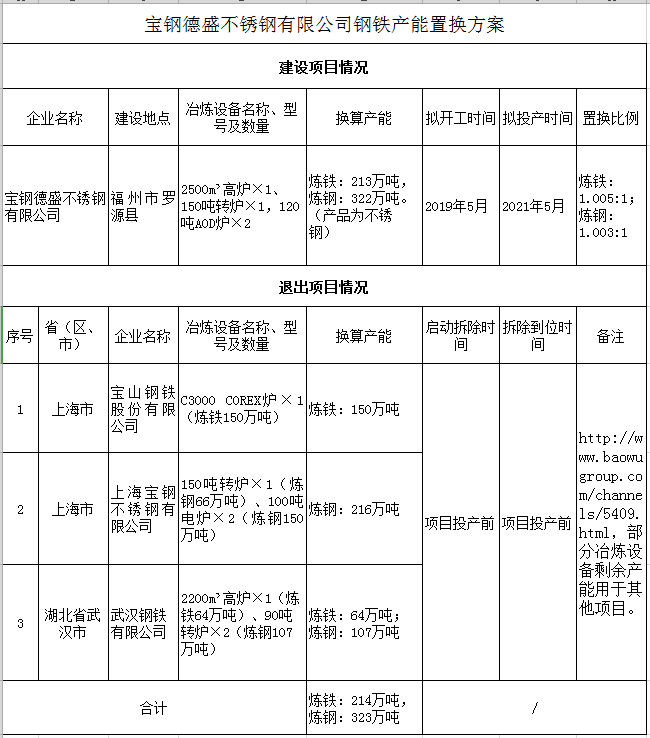 宝钢德盛不锈钢有限公司产能置换方案公示