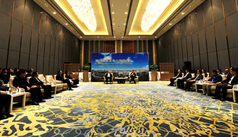 10月24日,世界钢铁协会主席,河钢集团党委书记、董事长于勇在唐山集体会见参加“2019产业链协同发展深度行——百强企业走进河钢”活动与会嘉宾,向中国机械工业联合会会长王瑞祥和参加活动的中国机械工业百强企业、汽车工业三十强企业、家电企业、集团重要战略客户表示热烈欢迎。于勇指出,未来,河钢与客户的合作要进一步打破传统的买卖关系,加大力度推进产业链协同发展,实现优势互补增强产业链建设的刚性,为产业的安全发展贡献出更大的力量。
