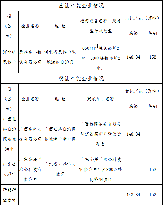 按照《国务院关于化解产能严重过剩矛盾的指导意见》《国务院关于钢铁行业化解过剩产能实现脱困发展的意见》和《钢铁行业产能置换实施办法》要求,现将承德盛丰钢铁有限公司产能出让方案予以公告,欢迎社会公众进行监督。