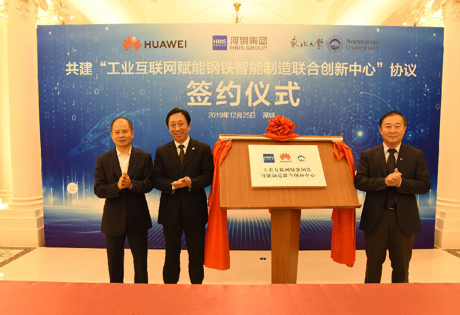 12月25日,河钢集团有限公司(以下简称“河钢集团”)、华为技术有限公司(以下简称“华为”)、东北大学(以下简称“东大”)三方本着“面向未来、注重实效、开放协同、共享发展”的宗旨,为聚集全球技术创新要素,推进云计算、大数据、人工智能、5G等技术在钢铁行业的深度应用,引领钢铁行业工业互联网的顶层设计和标准制定,在深圳华为坂田基地举行三方联合组建“工业互联网赋能钢铁智能制造联合创新中心”签约挂牌仪式。