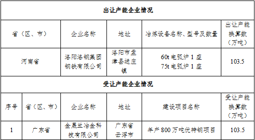 注:出让产能项目备案为年85万吨特钢,建设项目及装备、减量置换情况以广东省工业和信息化厅产能置换公告为准。