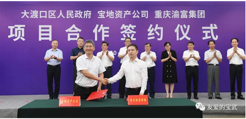 6月30日,宝地资产、宝钢发展与重庆市大渡口区人民政府、重庆渝富控股集团项目合作签约仪式在大渡口区机关办公大楼举行。