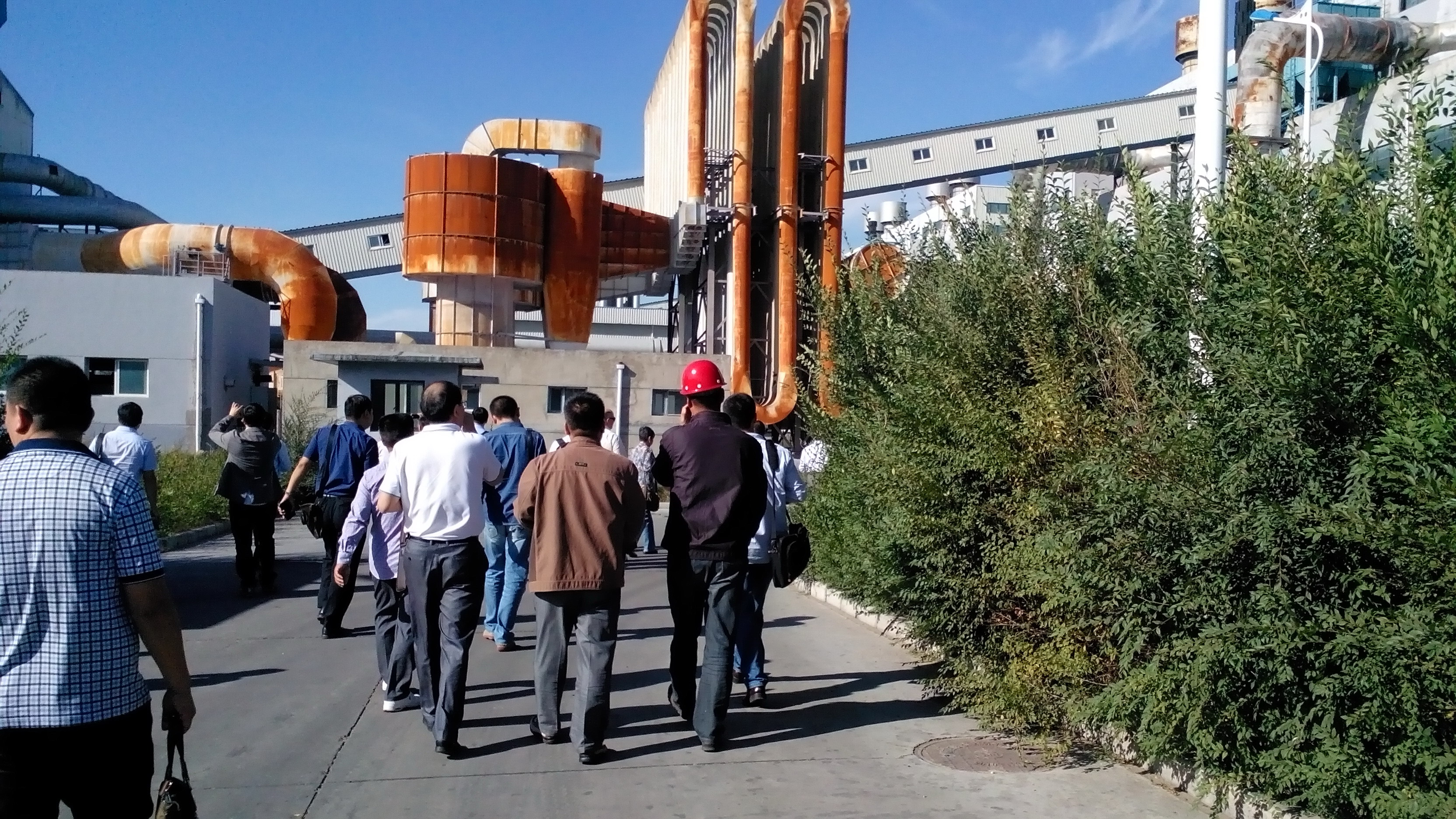 还未到工厂时,坐在车上就能看到清洁化的厂房,一改人们对金属硅冠以高污染的偏见。在明媚蔚蓝的天空映照下,四子王旗佳辉硅业显得更加光彩招认。正对佳辉硅业正门矗立着几块公司的宣传材料,介绍了公司的历史、产业规模、产业分布及未来规划等。在公司生产部负责人王经理等带领下,与会代表依次参观了原料车间、生产车间、加工车间和电力全程控制室等。四子王旗佳辉硅业有两个生产车间,各自装配有2台27000KVA的矿热炉,现在各车间开炉1台27000KVA的矿热炉,主要生产化学级金属硅及更高品位产品。佳辉硅业的原料上料系统采用传送带送至生产车间矿热炉。