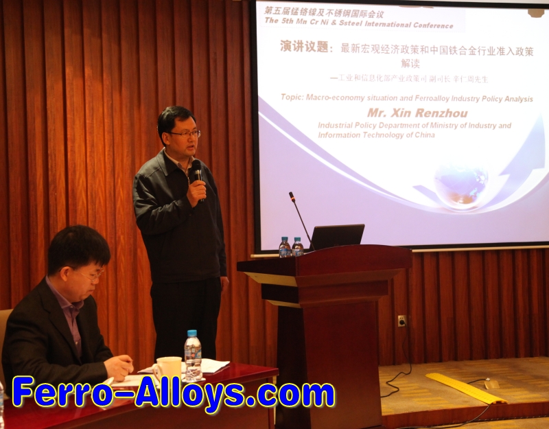 中国铁合金网讯: 10月17日,在中国铁合金网主办的第五届锰铬镍及不锈钢国际会议上,工信部产业政策司副司长辛仁周先生就宏观经济形势及铁合金行业准入、落后产能淘汰等方面做了报告。