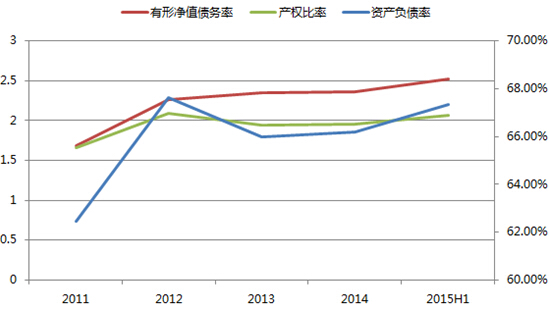 从上图中可见,股东权益总额开始走下坡,权益乘数上行,表明企业财务杠杆加大,风险越大。