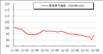 中国铁合金网讯:9月份,房地产开发景气指数(简称"国房景气指数")为93.4,比上月下降0.06点。(来源:国家统计局中国经济景气监测中心)