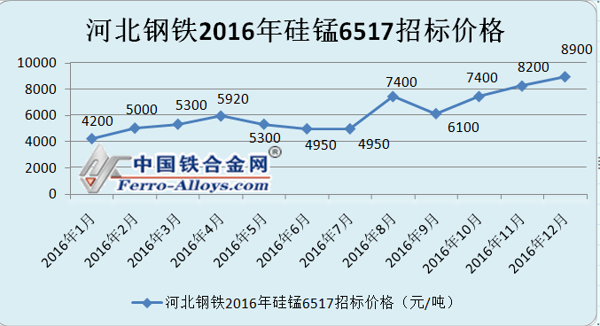 中国铁合金网讯:河钢敲定12月硅锰招标询盘价,8900元/吨到厂含税承兑,环比11月招标价格上涨了700元/吨。