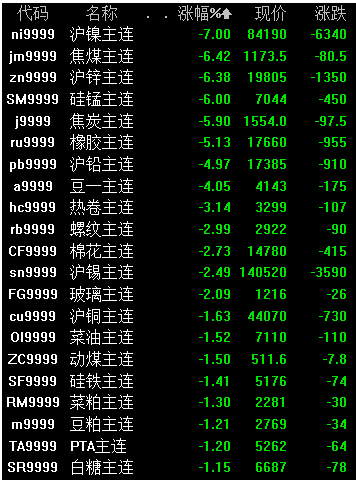 请注意第四行硅锰主连,跌幅6%,收于7044元/吨,下跌450元/吨。