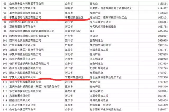天元锰业在今天全国工商联发布的“2016中国民营企业500强”中排名第109名。
