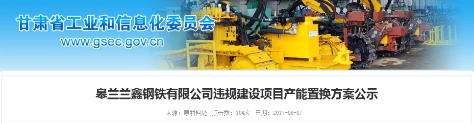 甘肃皋兰兰鑫钢铁有限公司违规建设项目产能置换方案公示