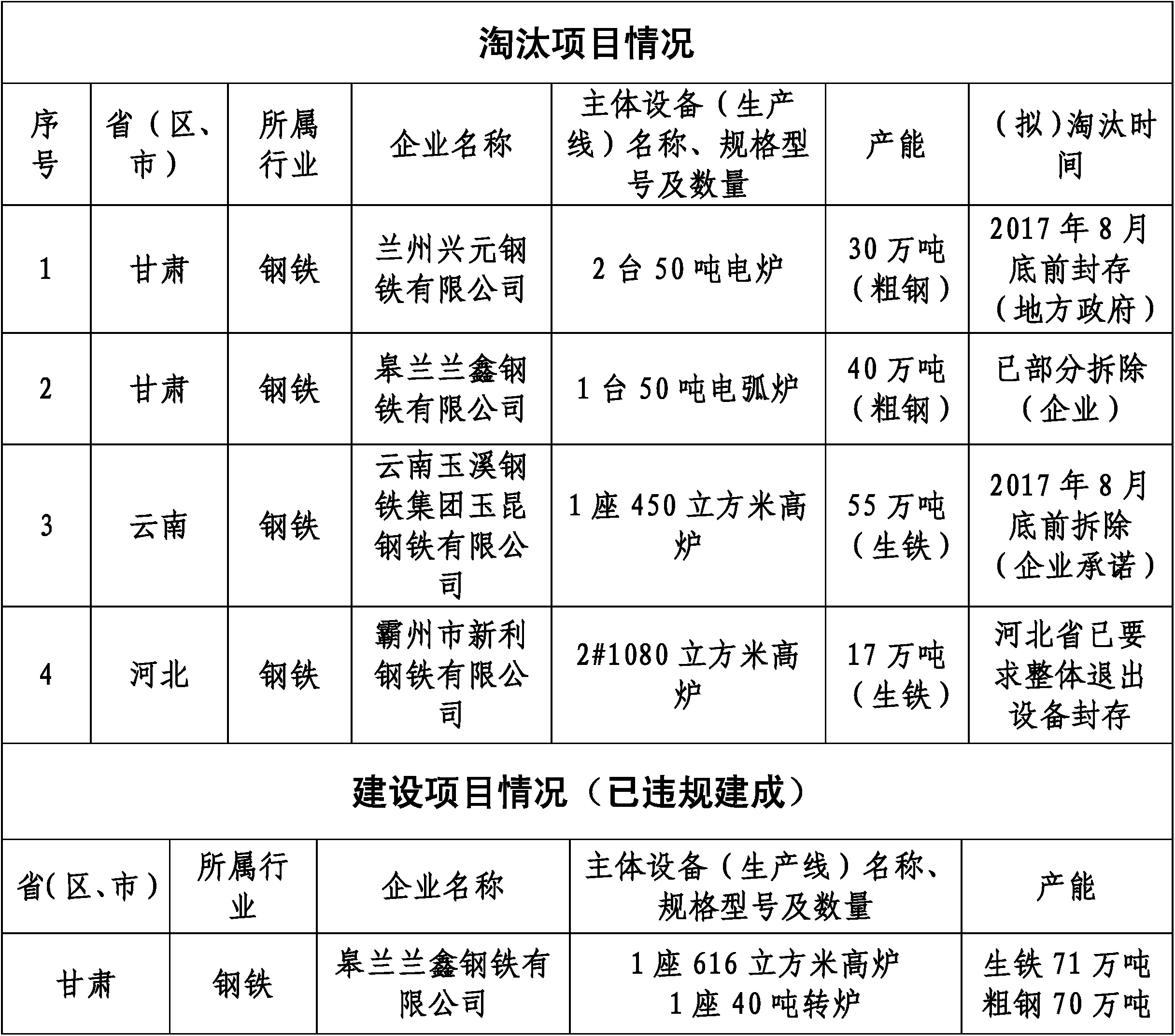 注:1.淘汰产能由兰州市列入本年度淘汰落后计划,并监督落实。