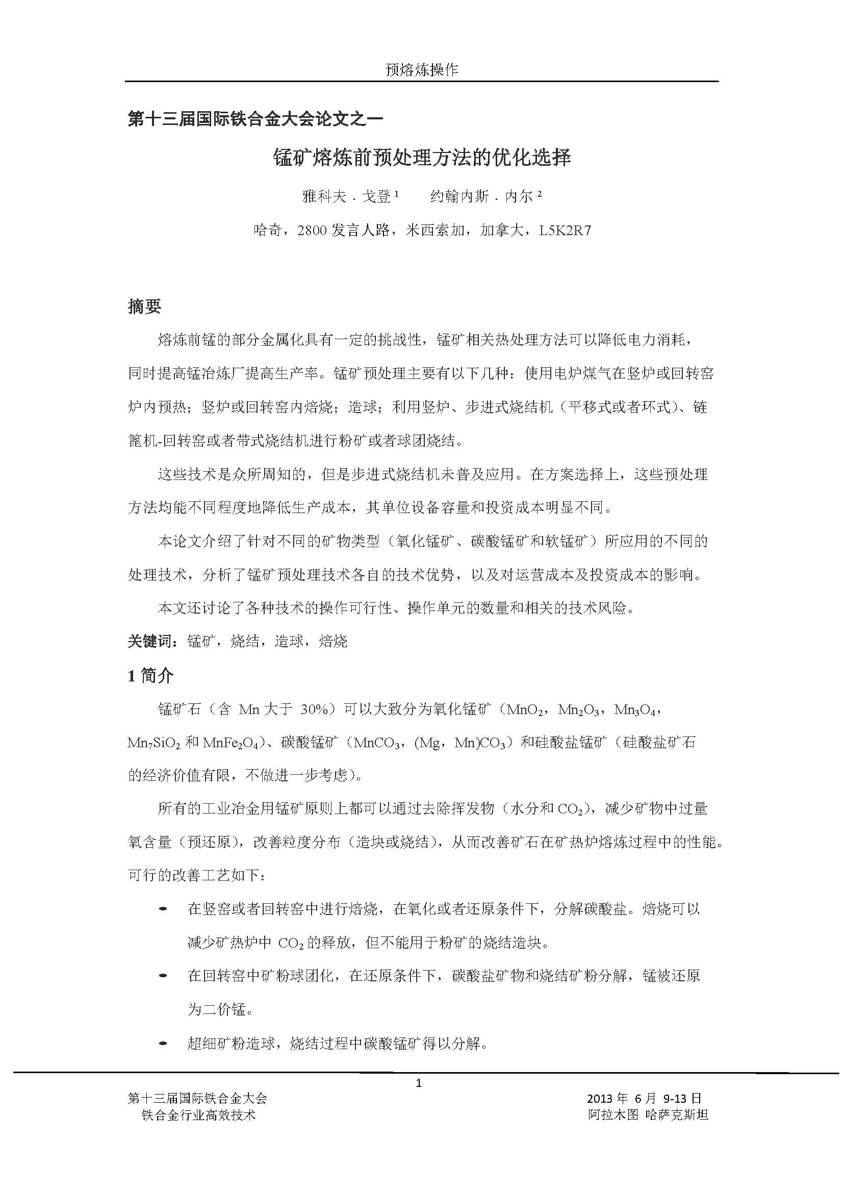 锰矿熔炉前预处理方法的优化选择锰矿熔炉前预处理方法的优化选择