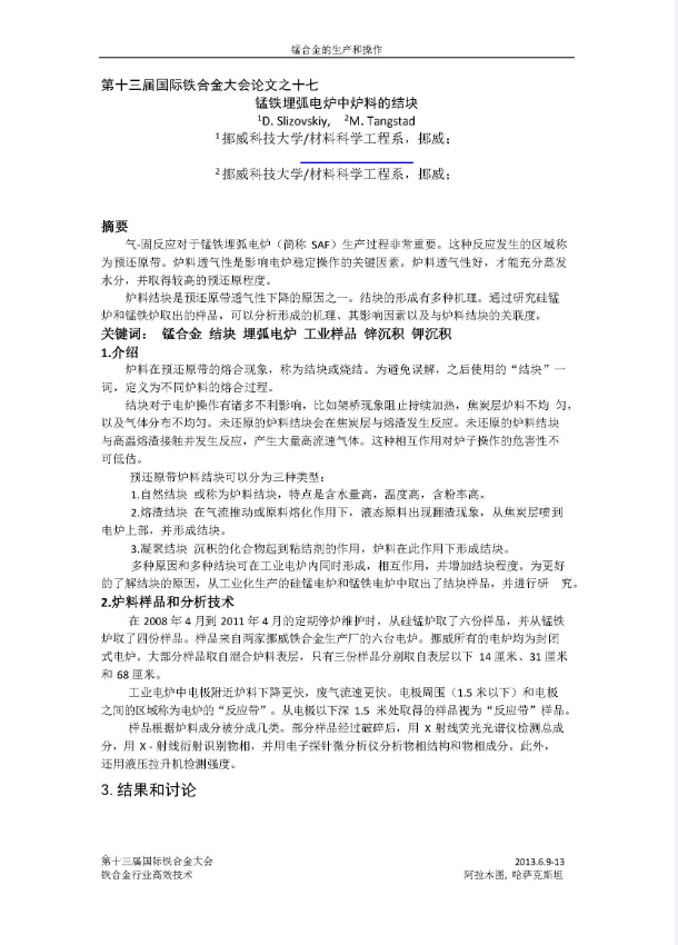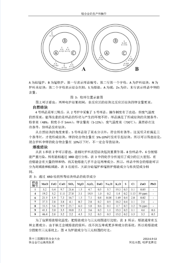 炉料结块是预还原带透气性下降的原因之一。结块的形成有多种机理。通过研究硅锰炉和锰铁炉取出的样品,可以分析形成的机理、其影响因素以及与炉料结块的关联度。
