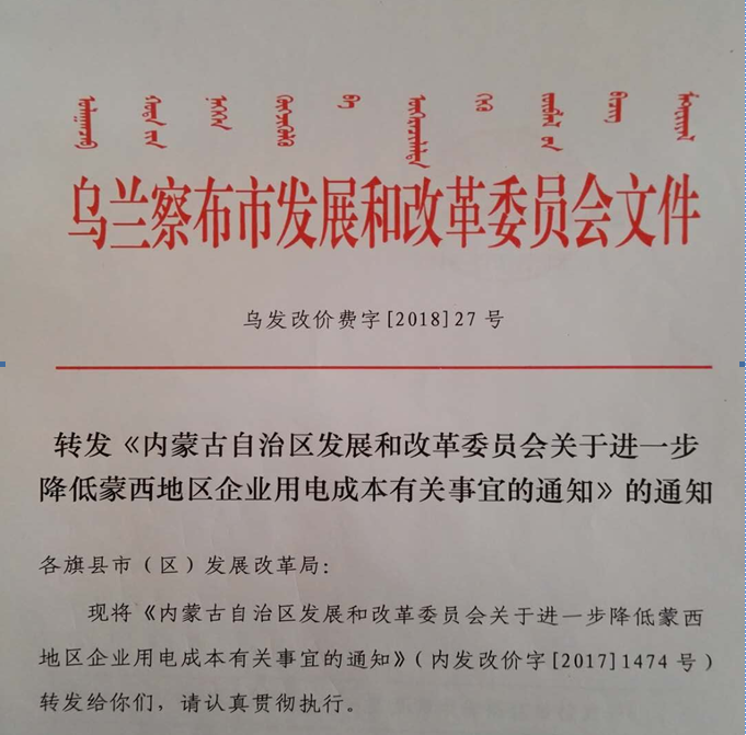 关于进一步降低蒙西地区企业用电成本有关事宜的通知