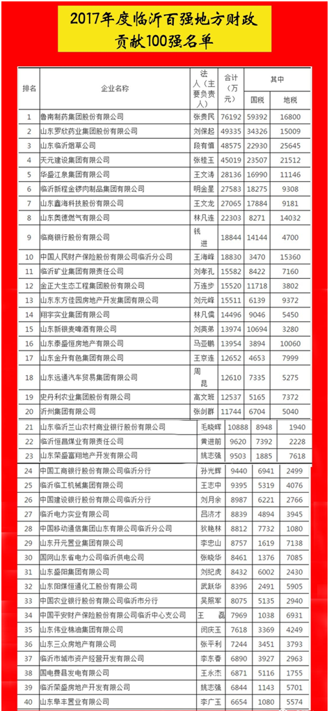 近日,2017年度临沂百强地方财政贡献企业名单出炉,盛阳集团位列第31位,纳税额较2016年翻一番,排名上升28个位次。