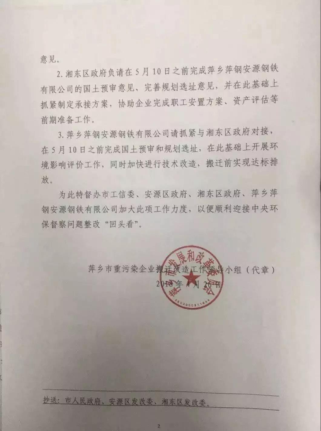 2017年12月,萍乡市发改委组织召开萍乡市建成区内重污染企业搬迁工作联席会,推进萍乡市建成区内5家重污染企业搬迁工作。这5家建成区内重污染企业(萍安钢、飞虎炭黑、浮法玻璃、中材水泥、柯美纸业)负责人参加了会议。