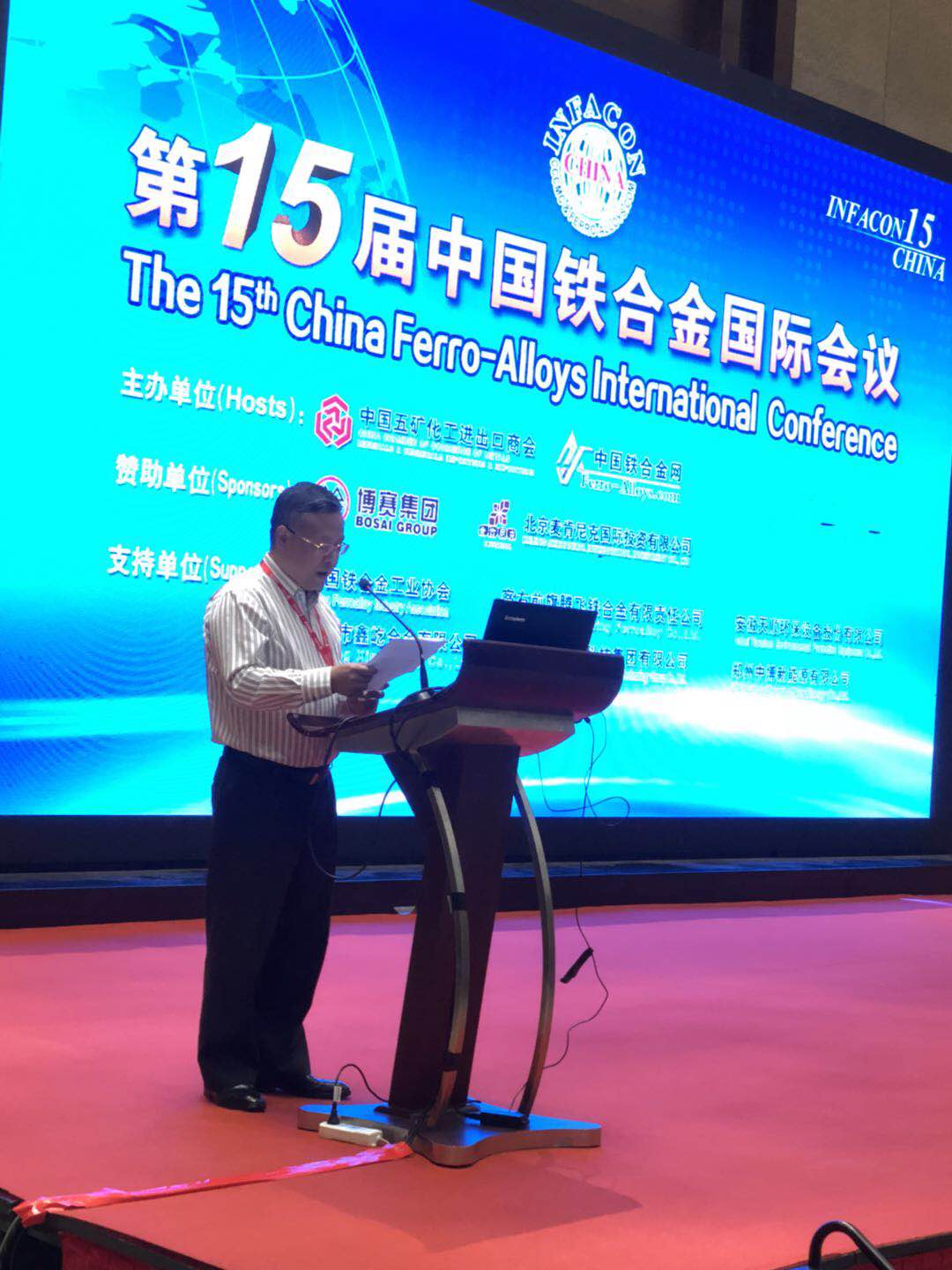 【中国铁合金网讯】5月31日上午,第十五届中国铁合金国际会议在重庆开幕。本次会议得到了重庆博赛集团的大力支持。公司董事长袁志伦先生在本次会议致开幕词。