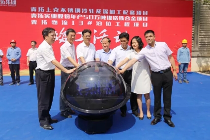 福安市政府市长叶其发主持召开竣工活动,并简要介绍了本次竣工的三个项目:一是青拓上克不锈钢冷轧及深加工配套项目总投资10亿元,用地420亩,年产30万吨优质不锈钢冷轧薄板,该项目于2016年9月开工建设,第一条生产线于2017年9月建成并试产,预计2018年7月底将全面建成达产,全面达产后,将实现年产值30多亿元;二是青拓物流12#、13#泊位工程总投资5亿元,建设2个3.5万吨级通用泊位,泊位长420米,年吞吐量370万吨。该项目于2017年11月开工建设,其中13#泊位已建成,12#泊位预计在今年7月底建成;三是青拓实业股份50万吨镍铬合金项目,是青拓400系项目之一,总投资12.5亿元,用地400亩,于2016年5月开工建设,2017年11月建成试生产,建设年产50万吨镍铬合金生产线全面达产后,可实现年产值20亿元以上。最后活动在郭锡文、金敏、兰斯琦、曾智勇、杨方、谢再春、钟盛江等诸位领导共同触球庆贺三大项目竣工中完美落幕。