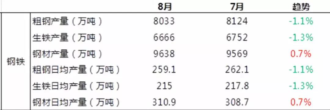 此外,8月份我国生铁和钢材产量分别为6666万吨和9638万吨,同比分别持平和增长6.4%;日均产量分别为215.03万吨和310.9万吨,日均环比分别下降1.3%和增长0.7%。
