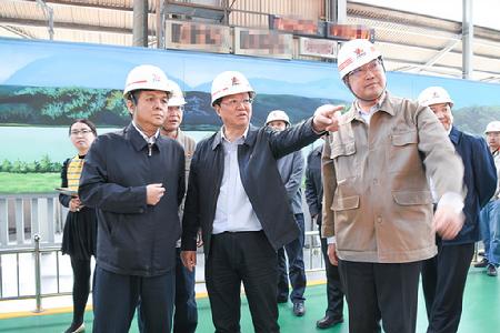随后,任正晓一行参观了炼铁厂3号高炉。在生产现场,正值高炉出铁,任正晓饶有兴趣地观看了出铁场景,参观了主控室,并详细询问高炉装备情况和节能降耗情况。