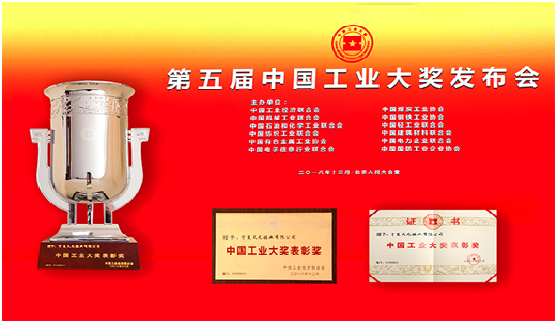 本届大奖由中国工业经济联合会联合中国煤炭工业协会、中国机械工业联合会、中国钢铁工业协会等11家联合会及协会共同发起并实施。宁夏天元锰业有限公司荣膺第五届中国工业大奖表彰奖,是宁夏唯一一家获奖企业,填补了宁夏企业多年来在此奖项上的空白。