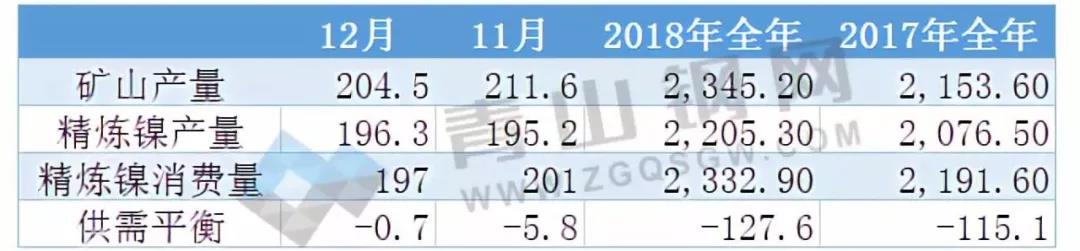 【中国铁合金网讯】国际镍业研究小组(INSG)周四表示,2018年12月全球镍市大体供需平衡,11月为短缺5,800吨,但2018年全年的供应缺口较上年有所扩大。