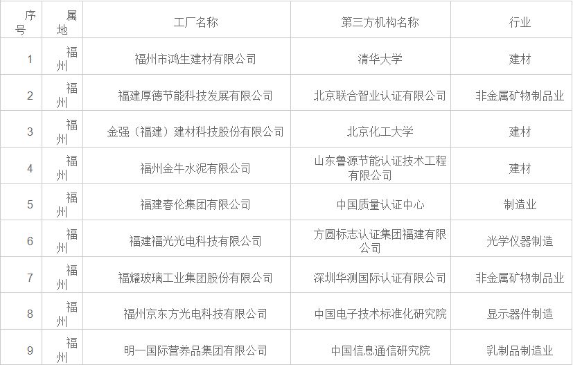【中国铁合金网讯】根据《绿色制造工程实施指南(2016-2020年)》《工业和信息化部办公厅关于开展绿色制造体系建设的通知》(工信厅节函〔2016〕586号)、《福建省绿色制造体系创建实施方案》(闽经信环资〔2018〕248号)、《福建省工业和信息化厅关于推荐福建省第一批绿色制造名单的通知》(闽工信环资〔2019〕35号),经企业申报、地市推荐、专家评审,现将拟纳入福建省第一批绿色制造名单的64家绿色工厂、8项绿色设计产品、3家绿色园区、10家绿色供应链管理企业予以公示。公示时间为2019年4月24日-26日,在此期间如有异议,可向我厅反映。