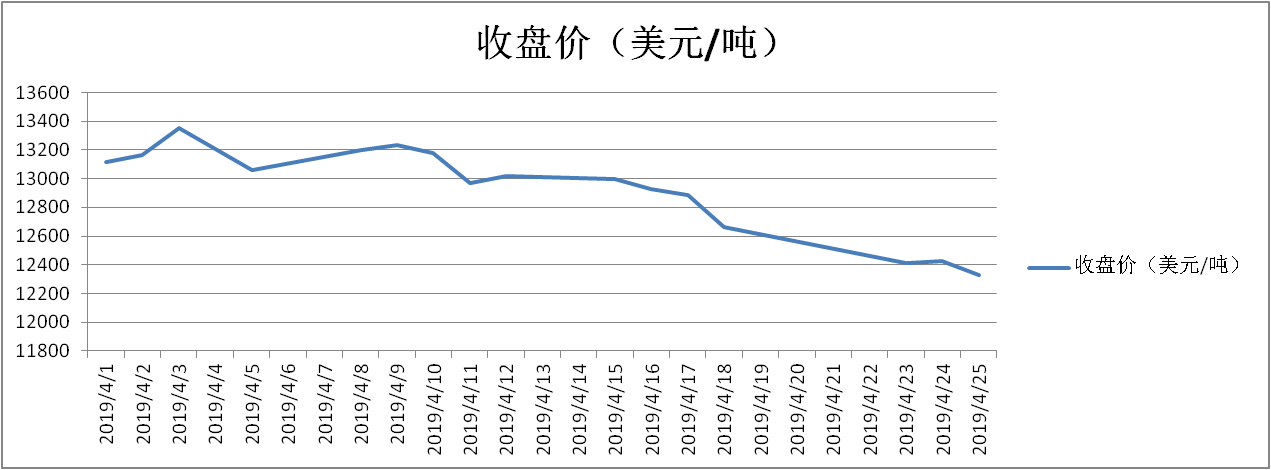 【中国铁合金网讯】在四月大部分时间内,美国整体经济数据呈现良好态势。欧元区经济整体疲软,外加英国脱欧前景不明,这使得英镑以及欧元指数在大部分时间内处于低位,相对应地,美元指数整体处于高位。受此影响,伦镍价格在本月走势趋于下行,如下图所示。昨日收盘时伦镍报于12660美元/吨,LME镍库存为179322吨。本月大部分时间,下游市场对电解镍需求不足,外加伦镍价格整体处于下行状态,因此,电解镍价格整体处于低位。今日金川公司电解镍出厂价上调200元/吨,为101200元/吨,桶装小块102400元/吨。金川镍报价101200-101500元/吨,进口镍报价为98500-98800元/吨。