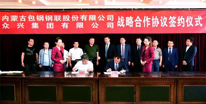 【中国铁合金网讯】5月27日下午,包钢股份与众兴集团战略合作协议签约仪式在包钢宾馆举行。包钢(集团)公司总经理孙国龙出席仪式并讲话。包钢(集团)公司副总经理、包钢股份董事长李德刚;众兴集团有限公司总顾问林来嵘,董事长牛国锋;包钢股份有关领导,以及生产部、财务部、采购中心负责人,众兴集团代表参加仪式。