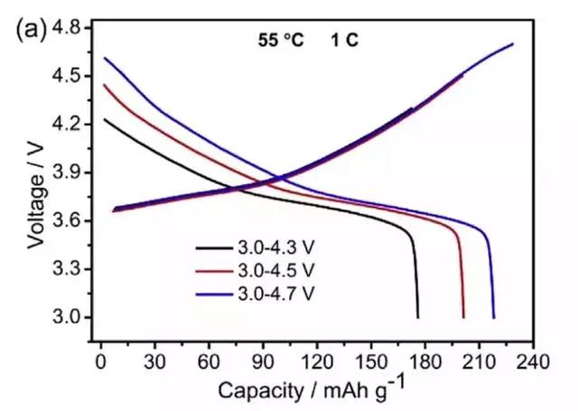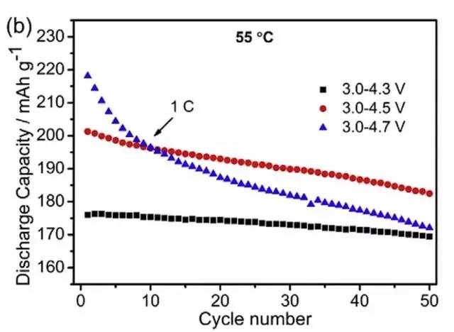 但是上述措施在提升正极材料容量的同时也会导致正极材料的循环性能和安全性能显著的降低,以NCM622材料为例,虽然4.7V截止电压可以为NCM622材料带来接近220mAh/g的比容量,但是同时会导致材料的循环寿命严重退化。在55℃,半电池体系4.7V截止电压下循环50次后,NCM622材料的容量保持率仅为78.9%,远低于4.3V下循环的NCM622材料(96.3%)[3],高电压下的高镍材料循环稳定性面临严峻的挑战。