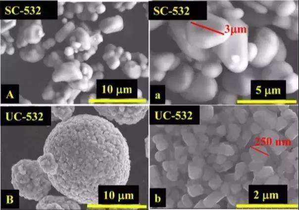 高镍材料存在的这些问题严重制约了高容量电芯产品的发展,而单晶材料的出现了为高容量正极材料的开发打开一个崭新的方向,所谓单晶材料是相对于传统的二次颗粒材料而言的,传统的NCM材料多为200-300nm的一次颗粒团聚而成的二次颗粒,而单晶材料则直接由直径2-5um的独立晶体构成,由于更高结晶度、更加稳定的层状结构、各向异性特征,单晶材料无论是在循环性能,还是在热稳定性,以及产气量等指标上都要优于传统的二次颗粒NCM材料[5]。