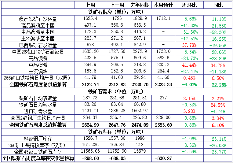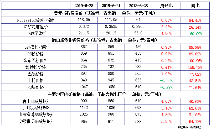 铁矿石上周价格变化
