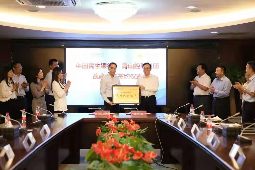 【中国铁合金网讯】7月29日下午,青山控股集团有限公司与中国民生银行总行在北京举行了战略合作签约和授牌仪式,中国民生银行正式授予青山控股集团“战略民企客户”荣誉。青山实业董事局主席项光达、中国民生银行总行行长郑万春等高层领导出席。