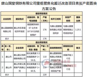 【中国铁合金网讯】8月16日,河北省工业和信息化厅发布了《邢台钢铁有限责任公司转型升级搬迁改造建设项目产能置换方案公告》和《唐山国堂钢铁有限公司重组暨焦化搬迁改造项目焦炭产能置换方案公告》。