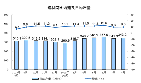 中国铁合金网讯:国家统计局9月16日发布数据:8月份我国粗钢、生铁和钢材产量分别为8725万吨、7117万吨和10639万吨,同比分别增长9.3%、 增长7.1%和增长9.8%;粗钢、生铁和钢材日均产量分别为281.45万吨、229. 58万吨和343.19万吨,日均环比分别增长2.4%、增长4.2%和增长0.5%。(国家统计局)