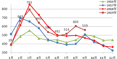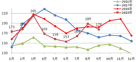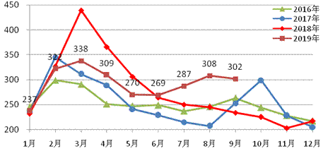 中国铁合金网讯:2019年9月,全国20个城市5大类品种钢材社会库存合计环比有所减少,并且5大品种库存均有不同程度下降。本月库存总量1331万吨,环比减少71万吨,下降5.1%;其中钢材市场库存总量1239万吨,环比减少76万吨,下降5.8%,港口库存92万吨,环比增加5万吨,上升5.5%。具体见图1、图2、图3。