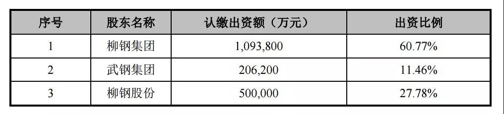 广西钢铁的两家股东是柳钢集团和武钢集团,其中,柳钢集团为柳钢股份的控股股东。此次增资完成后,广西钢铁的股权结构变动如下图: