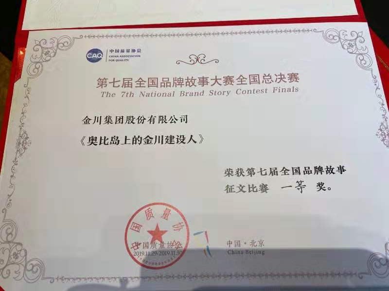 11月29日,从中国质量协会主办的2019年品牌创新大会暨第七届全国品牌故事大赛全国总决赛传来好消息:金川集团公司选送的《奥比岛上的金川建设人》获得品牌故事征文类一等奖,金川集团公司获得第七届全国品牌故事大赛最佳企业组织奖。