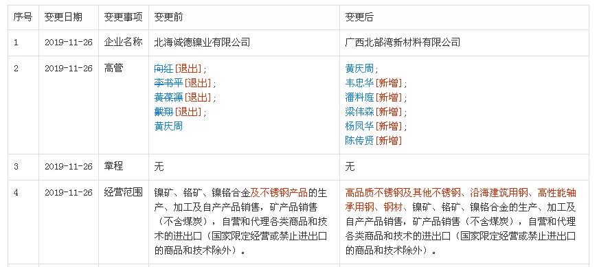 【中国铁合金网讯】据工商信息,11月26日,北海诚德镍业有限公司正式更名广西北部湾新材料有限公司。