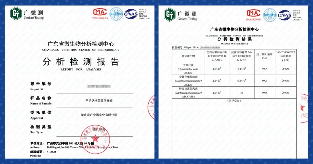 【中国铁合金网讯】日前,由宏旺投资集团有限公司攻关研发,具有自主知识产权的一种新型抗菌功能性不锈钢产品投入试产。产品经广东省微生物分析检测中心权威检验,对常见的大肠杆菌、金黄色葡萄球菌、肺炎克雷伯氏菌等抗菌率均达99%以上,具备优良的广谱抗菌性。