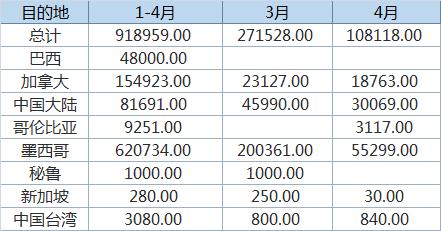 美国4月镍出口量为108,118千克,低于3月的271,528千克。
