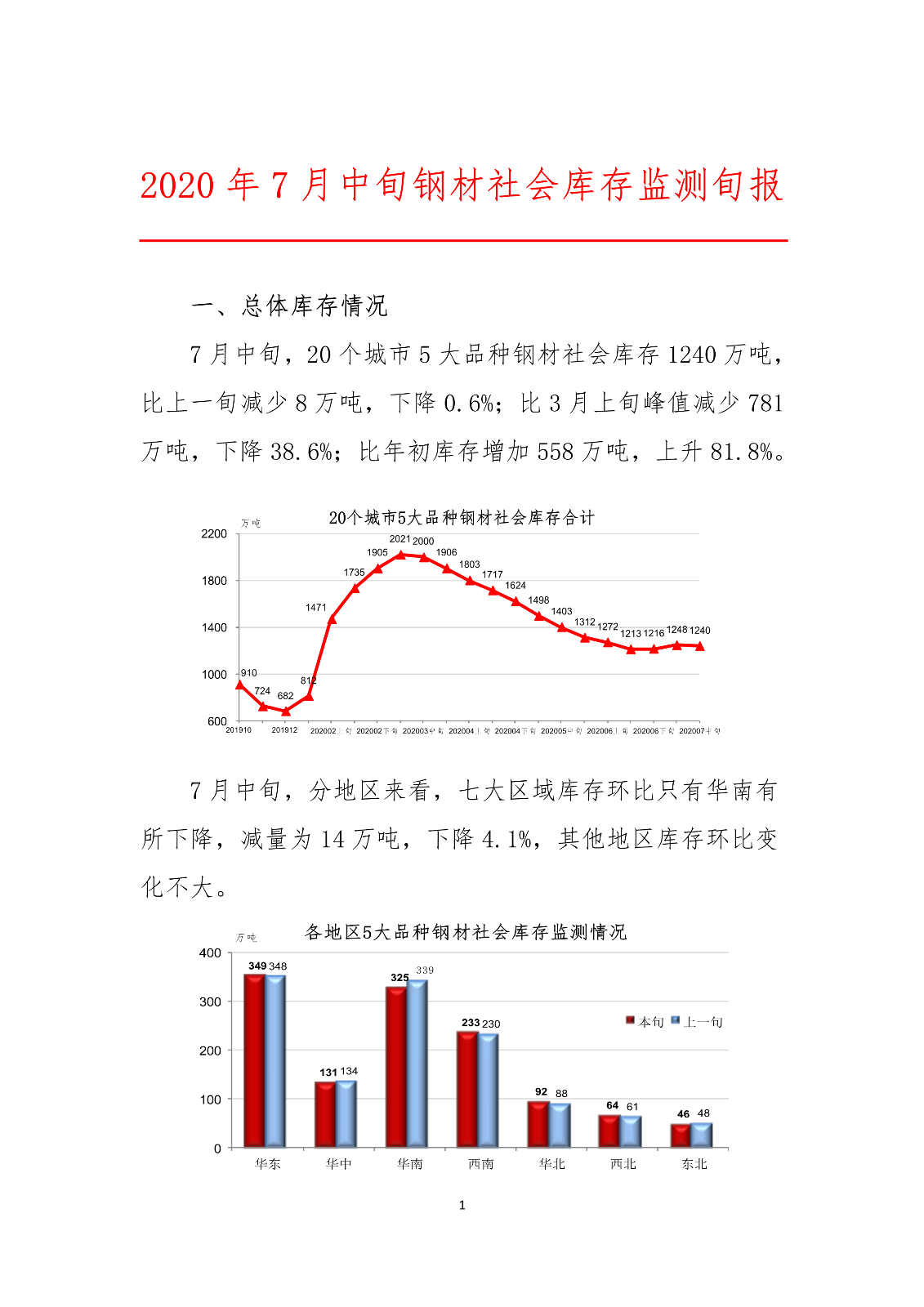 [导读]2020年7月中旬钢材社会库存监测旬报。