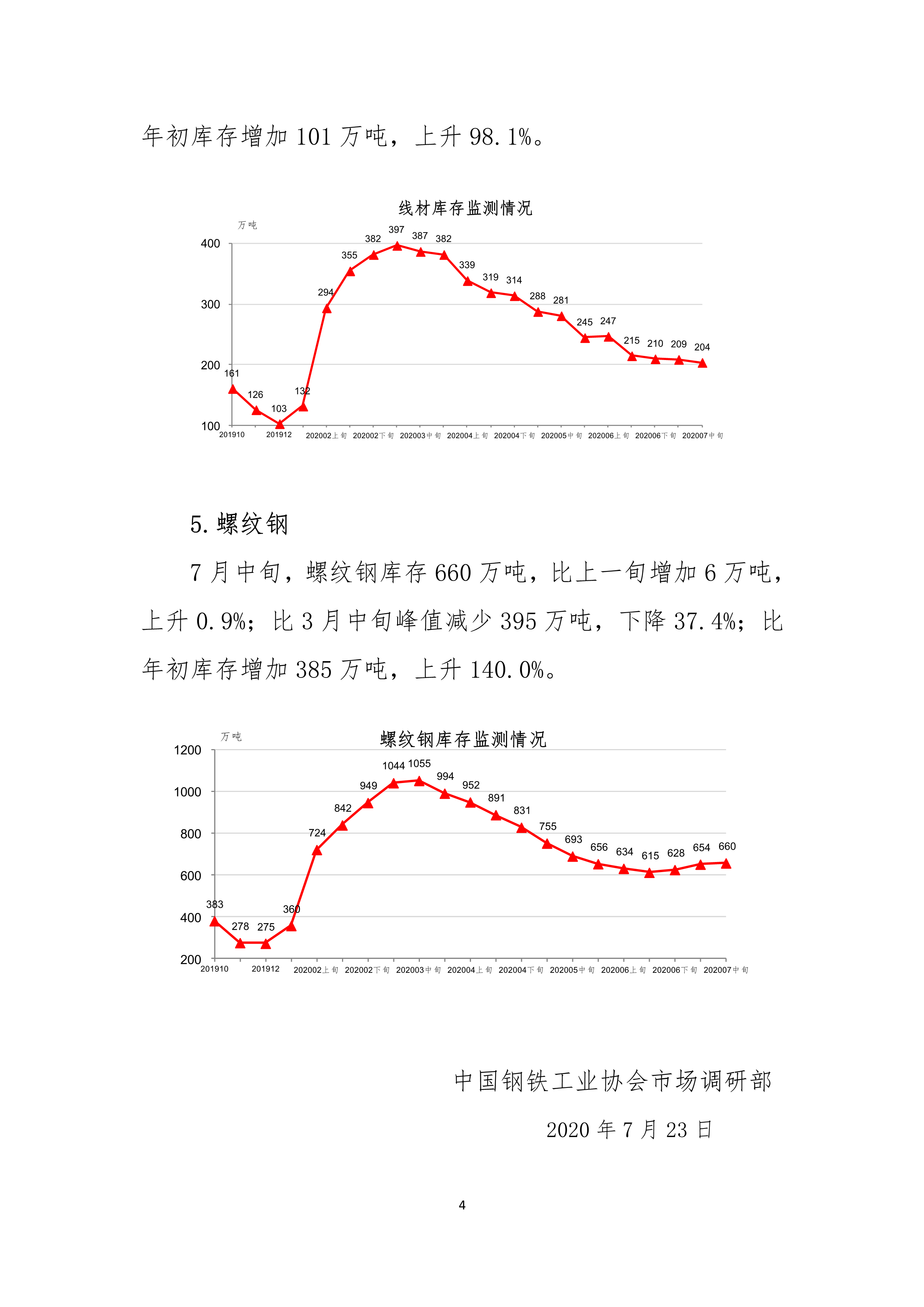 中钢协:2020年7月中旬钢材社会库存监测旬报