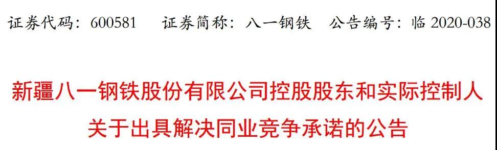 11月18日,八一钢铁发布《新疆八一钢铁股份有限公司控股股东和实际控制人关于出具解决同业竞争承诺的公告》(以下简称“公告”)。