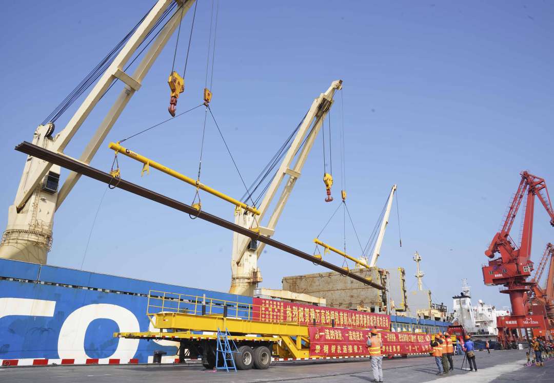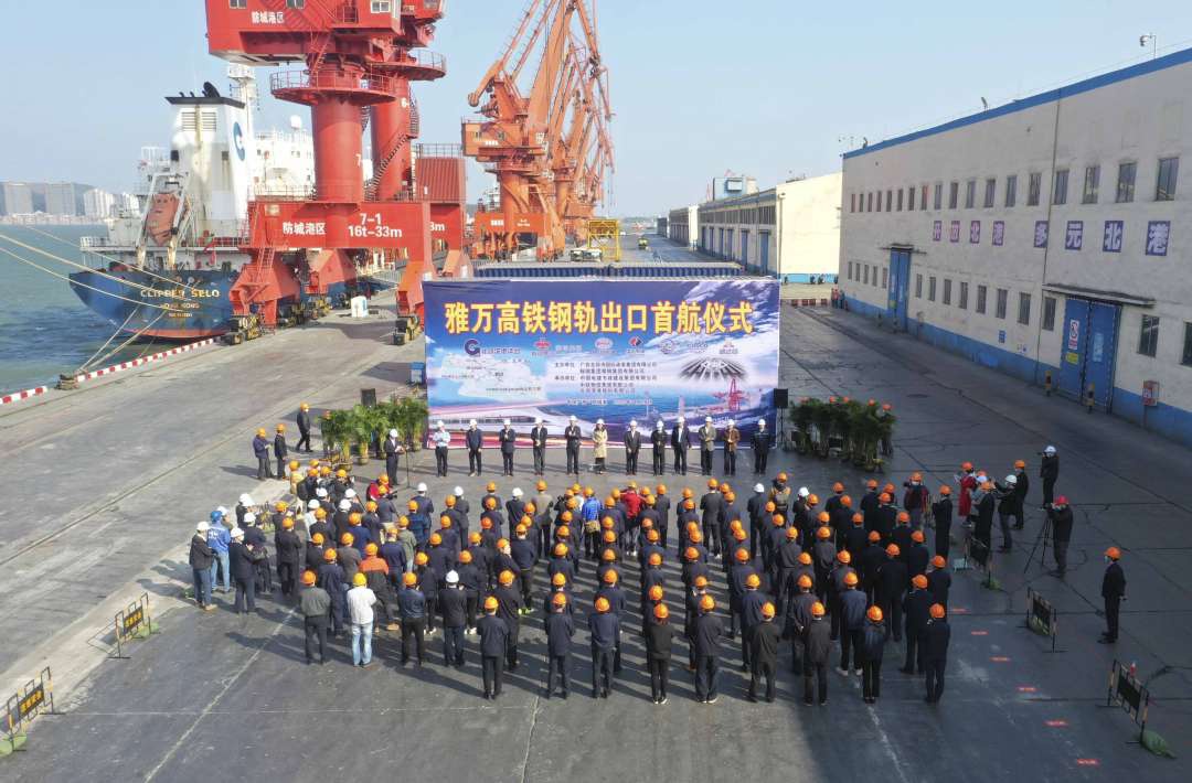 11月28日上午,随着一声鸣笛,一根50米长的钢轨被缓缓吊上油轮,标志着我国高铁“整体出口”的第一单——印尼雅万高铁出海的第一批钢轨在广西防城港码头首航成功,这也标志着中国成为全球为数不多可进行长定尺钢轨出口的国家之一。