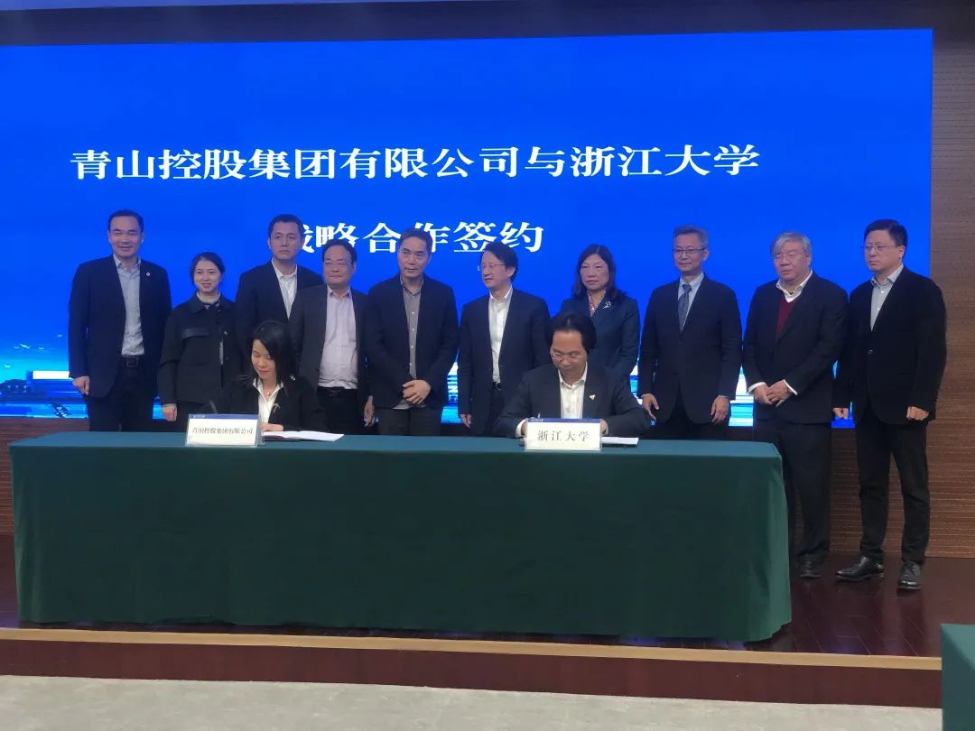 在吴朝晖校长、项光达主席、吴晓波、黄德余、魏江、韩高荣、吴艳军、沈黎勇等领导的见证下,孙建芬代表青山控股与浙江大学签署《青山控股集团有限公司与浙江大学战略合作协议》,董玲敏代表基金会与浙江大学教育发展基金会签署《青山慈善基金会向浙江大学教育发展基金会捐赠协议书》。