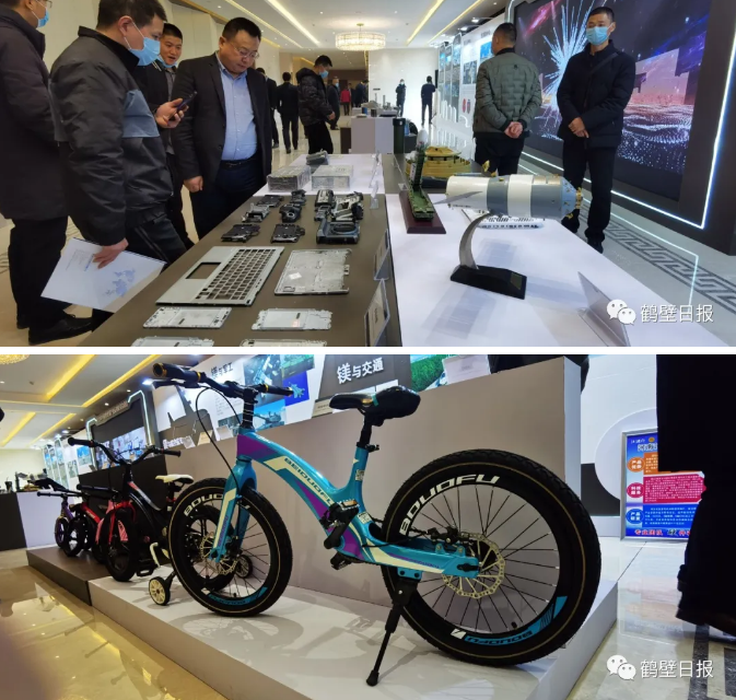 “我们这款镁合金儿童自行车具有轻便、减震性好等优势。”“我们刚好一直想售卖这种镁合金自行车,我们互相加个微信,再详细谈谈合作的事儿。”在展示活动现场,这样的交谈和交流比比皆是,来自山东、郑州、广东等地的企业代表们不仅认真观察展品,讨论展品工艺,还邀请鹤壁市的镁产业企业代表外出到厂参观。