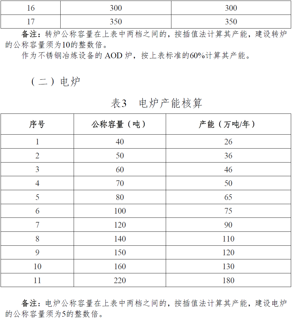 第六条 建设炼铁、炼钢产能均须分别实施产能置换。置换过程中的退出产能数量,按照2016年国务院国资委、各省级人民政府上报国务院备案去产能实施方案的钢铁行业冶炼设备清单内产能数量核定;对2016年及以后建成的合法合规冶炼设备,退出产能数量按照《产能核算表》(附件1)进行核定。置换过程中的建设产能数量,按照《产能核算表》进行核定。企业建设脱磷转炉须履行产能置换手续。建设非高炉炼铁、提钒转炉、回转窑-矿热炉(RKEF)等设备,产能核定须“一事一议”上报工业和信息化部。