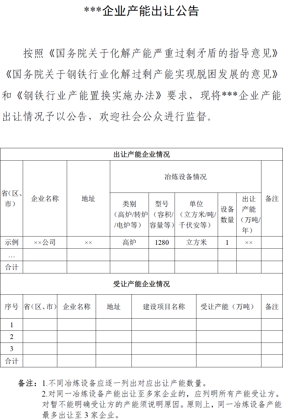 钢铁行业产能置换实施办法(征求意见稿)