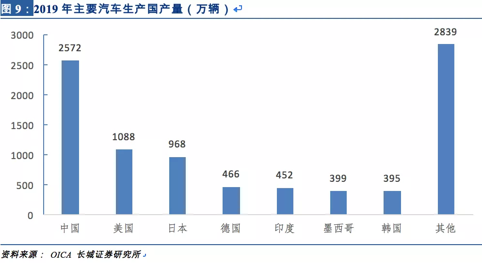 中国是全球最大的汽车生产国,但全球汽车生产主要仍在海外:根据OICA数据,2019年全球汽车产量9179万辆,中国汽车产量2572万辆,约占28%,是世界最大汽车生产国。尽管我国汽车产量独占鳌头,超过第二名美国一倍以上,但由于海外汽车品牌众多,汽车消费市场更加庞大,全球汽车生产主要仍在海外(72%)。同时欧美日汽车品牌在镁合金的使用量上明显高于国内,根据2015年数据,国内单车用镁量仅为1.5公斤,日本单车用镁量达到9.3公斤,欧洲达到14公斤。尽管根据我们测算2019年国内单车镁量已上升至4.8公斤,但与欧美发达国家相比仍有明显差距。